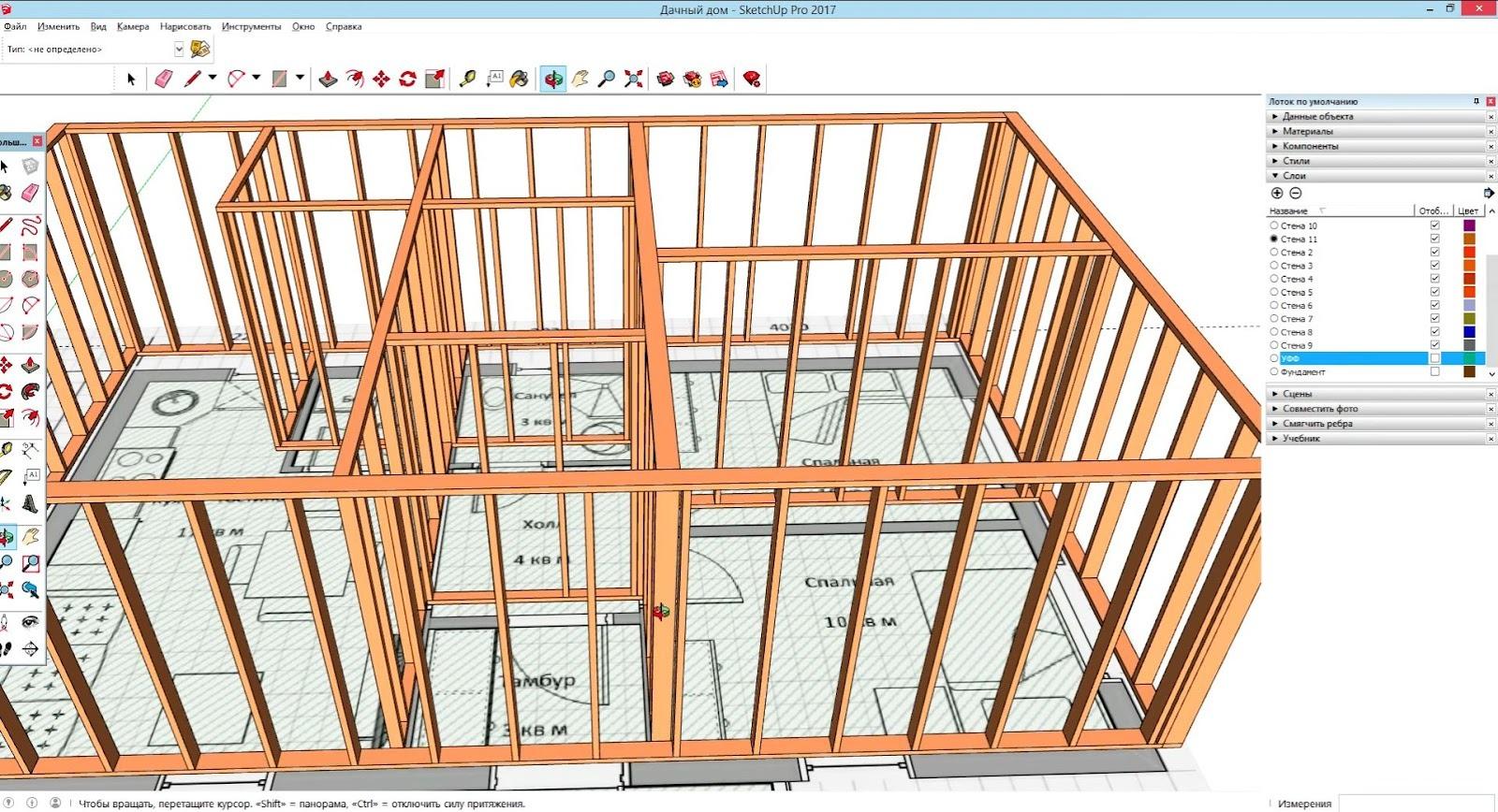 - SketchUp — универсальный инструмент для детальных 3D-моделей. Целевая аудитория: дизайнеры и строители, новичкам потребуются силы и время на освоение.