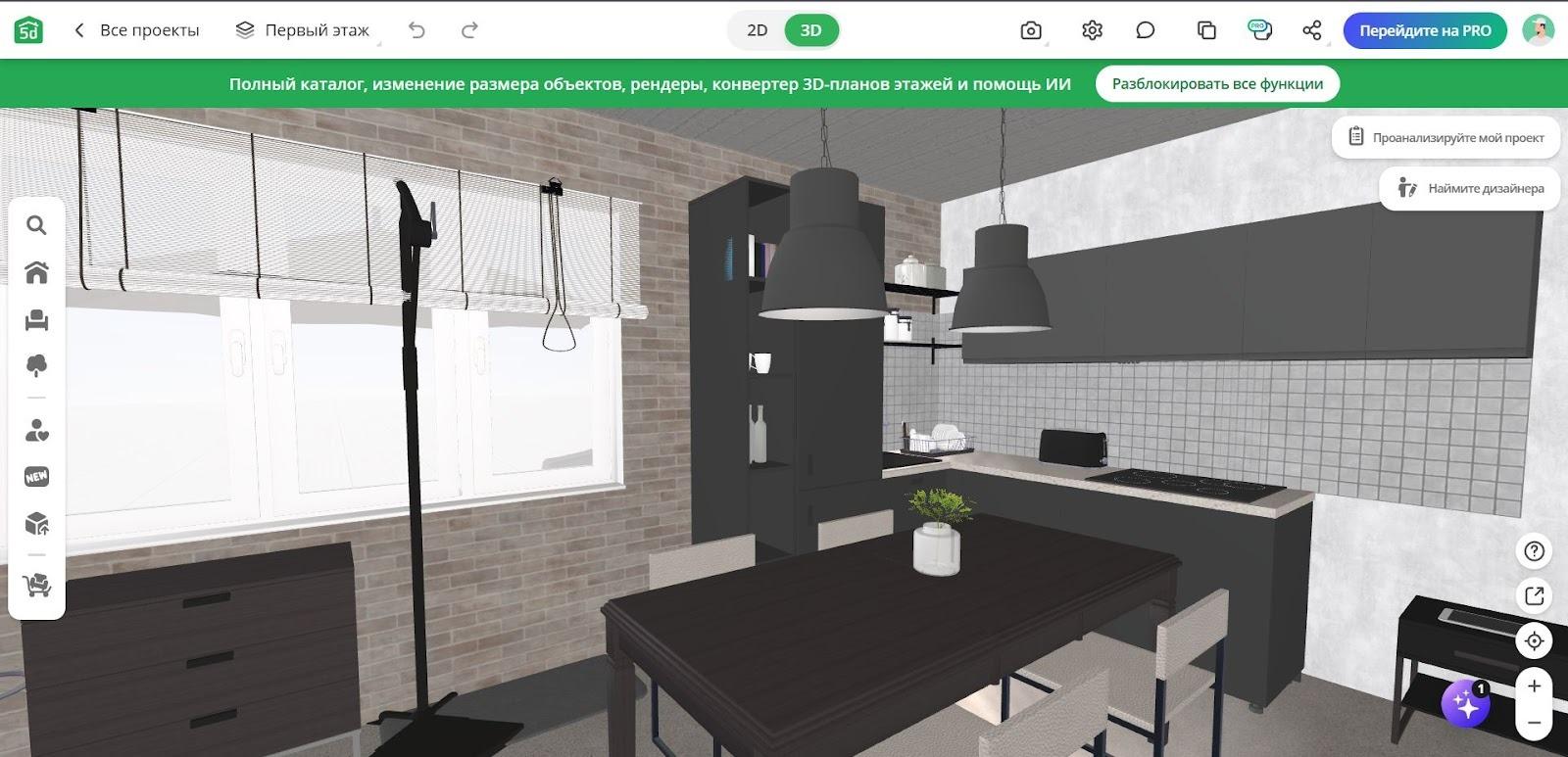 - Planner 5D — хороший вариант для проектирования дома и участка на русском языке. Также платформа подходит для новичков. Из минусов — полный функционал, в том числе каталог предметов, требует подписки.