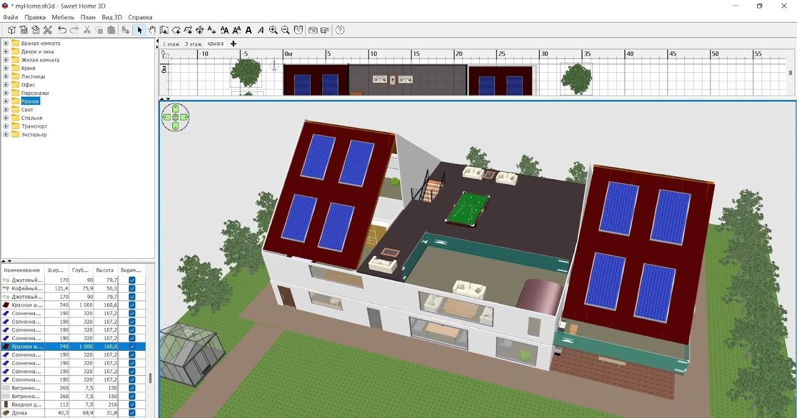 - Sweet Home 3D — софт с богатой библиотекой и экспортом в разные форматы: удобно для быстрого проектирования интерьеров и многоэтажных домов.